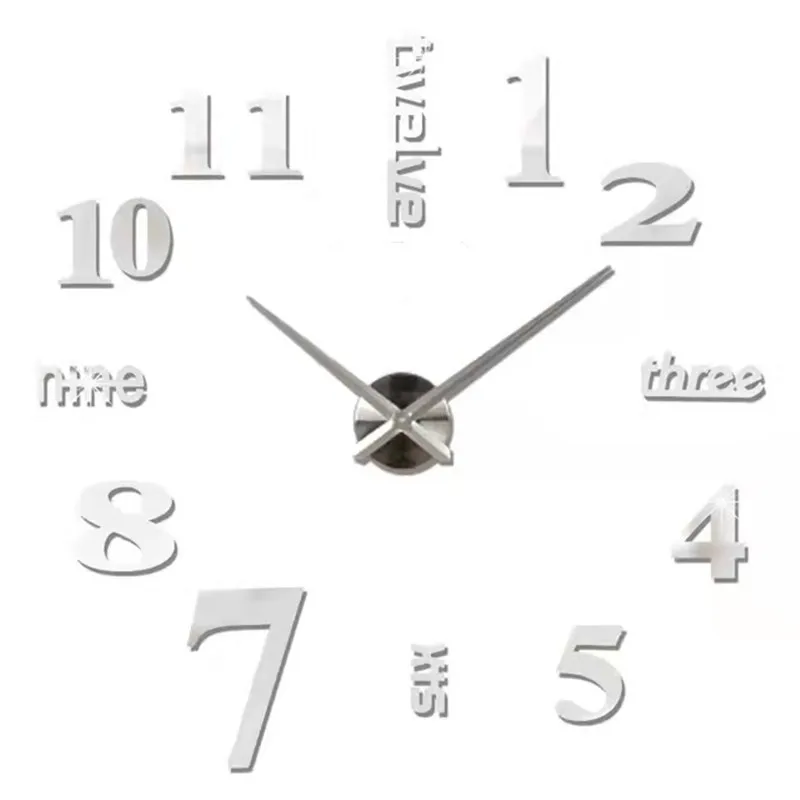 2023 Modern 3D DIY Wall Clock – Quartz, Acrylic Mirror