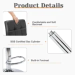 Be the first to review “JHK PU Leather Bar Stools Set of 2 – Adjustable Height with Backrest 🪑”