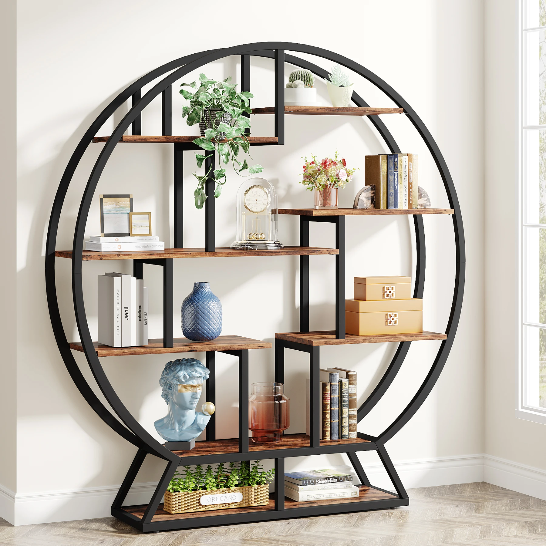 Tribesigns Round Etagere Bookcase, 63-Inch